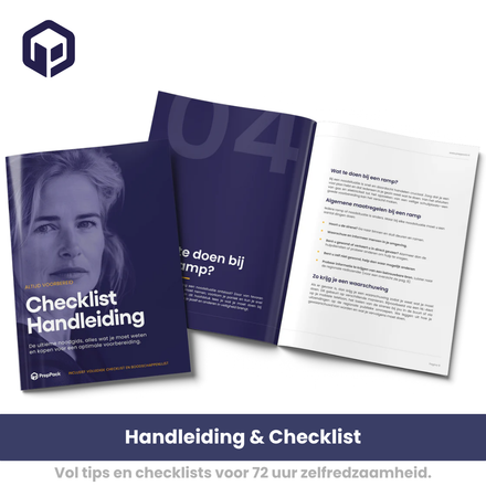 Onze pakketten zijn in de basis gericht op de eerste 72 uur van een noodsituatie. In die periode is het belangrijk dat je zelfstandig kunt overbruggen, bijvoorbeeld bij stroom- of netwerkstoringen. In het voorbereidingsboekje (fysiek en digitaal) vind je daarnaast extra tips om je, als je dat wilt, ook voor langere periodes beter voor te bereiden – bijvoorbeeld met extra water, voeding en praktische hulpmiddelen die goed bij jouw situatie passen.