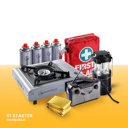Com o nosso kit de emergência, está garantidamente bem preparado para as primeiras 72 horas de uma situação de emergência. Inclui, entre outros, um fogão de emergência, uma lanterna LED e um kit de primeiros socorros com 32 peças. Quer estar ainda melhor preparado? No nosso eBook partilhamos dicas extra e uma lista de verificação útil. Receberá este eBook com a sua encomenda.