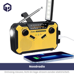 - Fonte de alimentação multifuncional: Bateria incorporada, manivela manual e painel solar para fornecimento contínuo de energia.